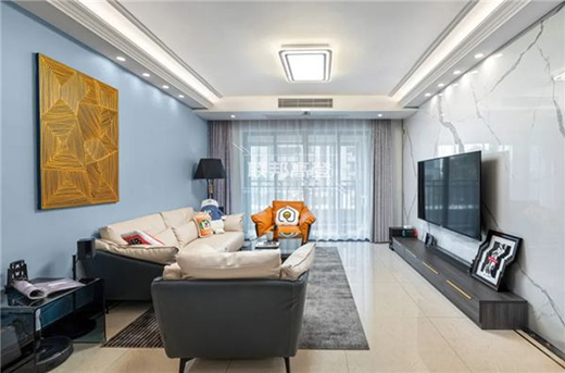 為保持輕奢風(fēng)整潔簡單的觀感,聯(lián)邦高登作為高端全屋定制品牌代表,其以客戶需求為中心,針對客廳選用的家具以低矮型為主。放眼望去盡是通透視野,沙發(fā)墻與電視背景墻通過色彩、材質(zhì)對比打造柔和視覺效果,而一字型電視地柜則以簡約造型為客廳點睛。以“精簡、便捷、美”三個要素作為電視柜的挑選指標(biāo),一字型抽屜電視柜既能擺放客廳瑣碎雜物,又能夠渲染別致輕奢氣質(zhì),成就亮眼一筆。金沙拉手設(shè)計能夠充分滿足屋主對線條裝飾的喜好,為柜體帶來精致感。