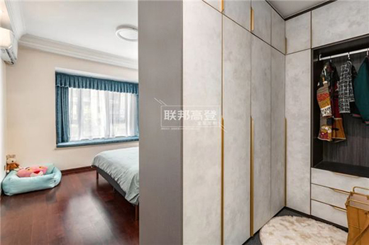 在主臥空間,聯(lián)邦高登高端全屋定制打造了一個半獨立衣帽間。一改常規(guī)一字型衣柜布局,極大地提升了臥室衣柜的儲物性能。比起千篇一律的純色或原木色,門板上帶有獨特暗紋的雪花印的設(shè)計,觸感更顯細(xì)膩且有光澤。配上金沙弧形拉手,可以展現(xiàn)整體主臥空間的奢雅氣質(zhì)。衣帽間內(nèi)特意留出開放掛衣區(qū),在方便平日衣服挑選穿搭的同時,也能輕松解決“隔夜衣”無處可放的問題。并對臥室飄窗位置進行了合理利用,打造置物區(qū)和梳妝臺的結(jié)合。在充當(dāng)床頭柜和梳妝區(qū)使用的同時,也為屋主的美妝護膚用品提供充足收納位置。