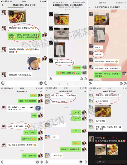 此番國內最嚴重的疫情所在地是廣州荔灣區,因配合隔離需要,人們的生活受到了很大程度影響,很多物質都不方便出門采購,合生雅居融穗店團隊化作抗疫志愿者,為他們送去“千花白果”禮物,隔離疫情,不隔離愛!“我們重視客戶,更珍愛家庭!”