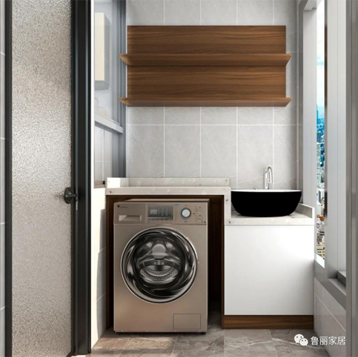 陽(yáng)臺(tái)的有效利用可以為家庭解決許多煩惱。洗手臺(tái)下做收納柜,既可以將排水管隱藏,又可以收納日常雜物。洗衣機(jī)嵌入臺(tái)面,有效利用上方空間設(shè)置置物臺(tái),將空間完美劃分。在這里擺上你喜歡的花草,也是你休閑放松的好去處。