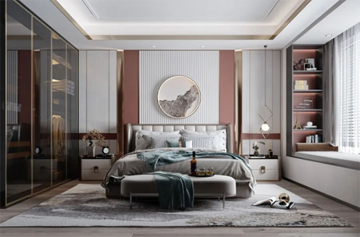 簡·愛保羅全屋定制新中式系列,講究線條簡單流暢、精雕細琢,融合傳統文化的象征性元素,如水墨畫等。以臥室為例,無論是在色彩、線條、光影以及空間上都著墨不多,卻給人一種視覺上非常豐富的感覺。在內容設計上,通過提取傳統家居的精華元素和生活符號進行合理的搭配、布局,使整體的家居設計中既有中式家居的傳統韻味又添加了點現代人居住的生活特點,讓古典與現代完美結合,傳統與時尚并存,處處散發著落落大方、溫文爾雅的雍容氣度。