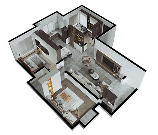 2.采半開放式餐廚區,與客廳緊密相連,增強家人間的互動交流,寬敞的空間視野,整個布局流暢不擁擠;