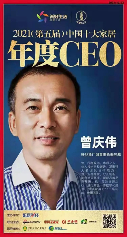 恭賀!旭輝集團總裁曾慶偉先生榮獲“2021中國十大家居年度CEO”