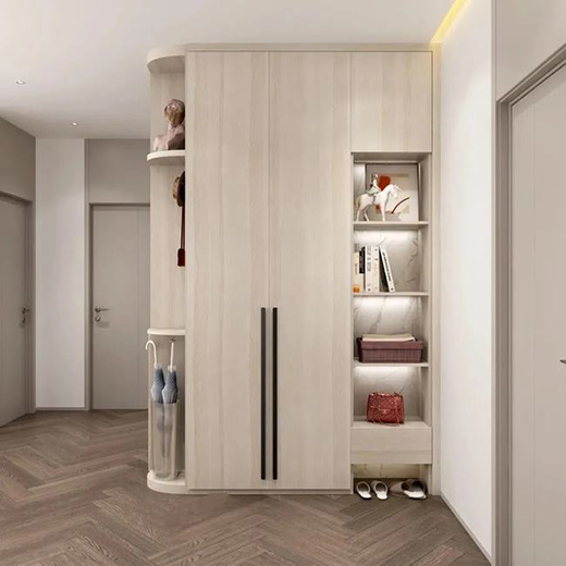全屋定制對(duì)空間利用具有“化腐朽為神奇”的效果,比如把衣柜做進(jìn)墻體,把書架做在墻面上,在拐角處定制儲(chǔ)物柜等,充分利用每一處空間,增加更多的實(shí)用性設(shè)計(jì)。