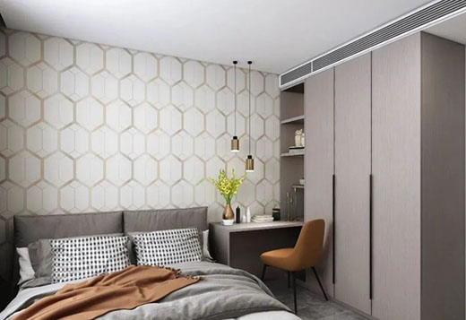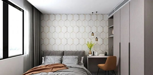 次臥中以高級灰為主色調,加入淺色背景墻紙,讓整個空間視覺舒適感更強!!!