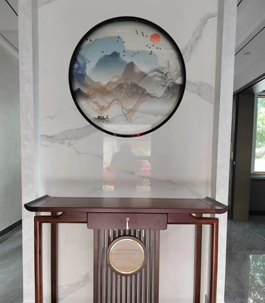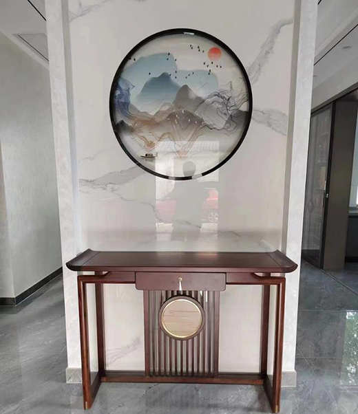 中式風格的玄關臺,來自于天然的實木材質,集自然精華于一身,體現出木材天然肌理的溫潤質感,流露出自然與原始的美感。