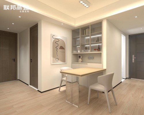 陽光書房,滿滿清新文藝氣質;落地窗外溫柔陽光照射入內(nèi),打造一處靜心理想境地。結合空間布局安排,個性定制書桌柜為辦公閱讀增添便利。