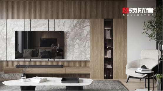 有人說電視柜是客廳的靈魂,一個好的電視柜,不僅要求美觀還要實用。雖然現在年輕人很少看電視,對電視的需求度越來越弱,但是電視始終在家有一席之地。在電視柜的設計上,領航者以簡潔大方為靈感,通過立體線條拉伸空間,呈現出高級又開闊的氛圍。搭配簡潔優雅的元素,打造出寧靜高雅的格調,一柜到頂的置物空間,不僅使各類擺件有序擺放,更讓整個空間保持了整潔的美感。