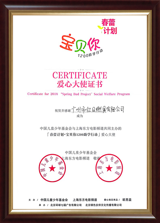 創建于1981年的紅日廚衛,經過37年的長足發展,已經躋身為我國廚衛行業的領軍品牌,并始終致力于技術上的突破與創新,為萬千用戶帶去綠色、智能、環保的烹飪新體驗。除此之外,紅日廚衛在企業發展的同時,時刻不忘踐行社會責任,先后組織并參加了多項公益活動,為貧困地區的群眾送去了問候與幫助。為了表彰紅日廚衛在“春蕾計劃·寶貝你1200助學行動”中的愛心之舉,中國少年兒童基金會和上海東方電影頻道聯合為其頒發了愛心大使證書。