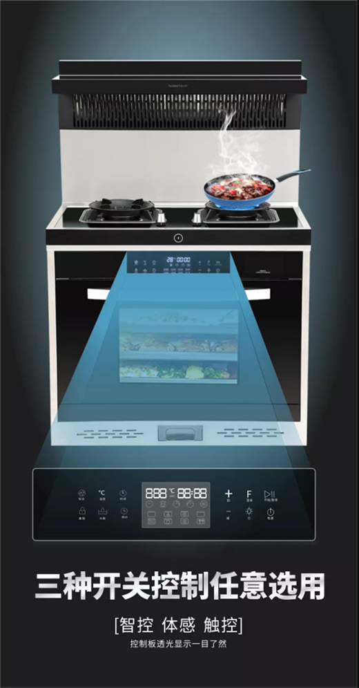 樂鈴多功能一體集成灶“交互智能+蒸烤一體”,讓人體驗到了前所未有的科技未來感。不僅是智能聯動技術本身,更能在烹飪過程中,兼顧年輕消費者對于個性時尚的“好奇心”:智控、體感、觸控三種開關控制任意選用,控制板透光顯示一目了然。樂鈴多功能一體集成灶無疑給用戶帶來在外觀、功能和體驗上的極致享受。