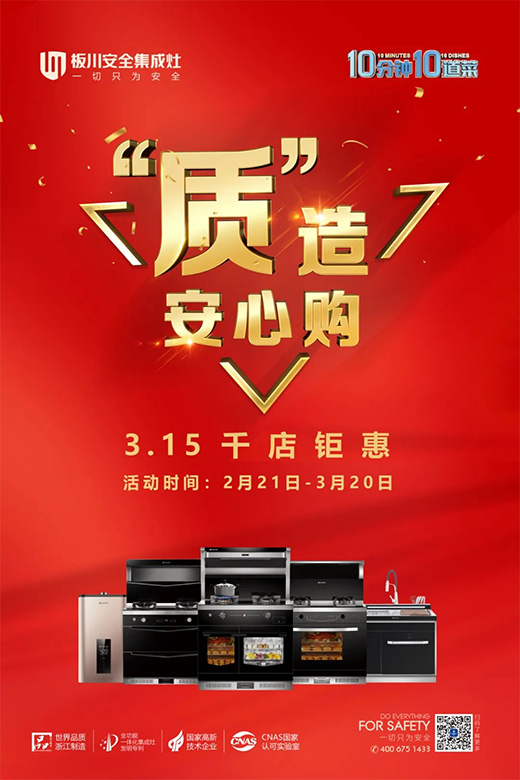 質造安心購時代在變,“Made in China”一詞的內涵也正在悄然轉變,中國制造正闊步邁向“中國智造”和“中國質造”。板川深諳“品質永遠是企業的立身之本”,一直以來都在致力于打造一個高品質、智能化、一站式的標桿品牌,通過積極自主創新、研發,提升產品價值,“10分鐘10道菜”不僅是口號,更是板川品質見證,此次315活動板川重申品質與服務,樹立品牌消費信心,踐行“品質質造”。