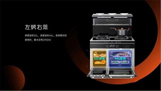 優格左烤右蒸集成灶,選擇用科技來滿足美食達人們的下廚樂趣,雙腔獨立,蒸烤同步。