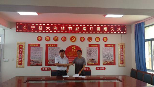 甘肅新能源協會攜手愛心企業甘肅耀華燈飾科技有限公司、甘肅新啟源生態環境科技有限公司今天在會寧縣大溝鎮舉辦了太陽能LED路燈照亮鄉村的捐贈活動。