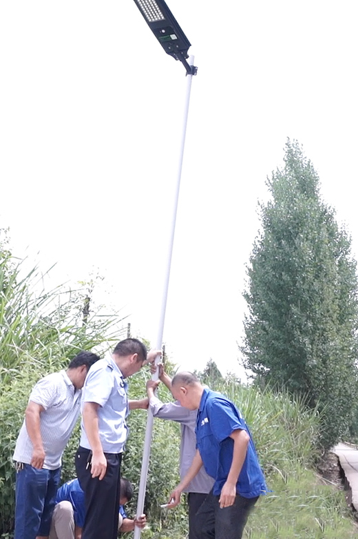 現(xiàn)在裝上太陽能路燈后,給村里老百姓帶來了方便,“掙錢要早出晚歸也不怕了。” 肖家溝村第一書記、雁江分局民警粟韜介紹,“今天一共裝了60多盞路燈,全村一共要裝100多盞。”