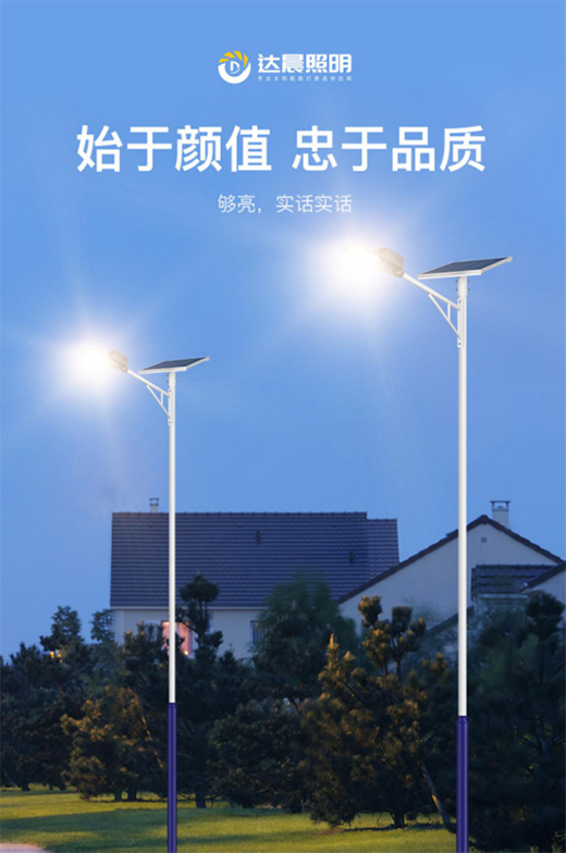而在太陽能路燈行業,專注設計提升太陽能路燈附加價值的企業并不多,諸多廠家并沒有經過專業的設計研究,只是進行粗放式的組裝加工,這樣的廠家雖然能夠提供價廉的產品,但是質量堪憂、品質難以保證。達晨照明作為“中國十大太陽能路燈品牌”,與傳統路燈品牌相比,達晨照明的太陽能路燈光照效果、環保節能、美觀程度上更勝一籌。在光照效果上,達晨照明太陽能路燈可人為的改變燈光亮度,以滿足不同道路的需求;在環保節能上,選用新型優質材料,不僅省電,而且亮度明顯提高;在美觀程度上,達晨照明太陽能路燈造型多樣、顏值高,即使在白天也能產生較好的城市美化效果。