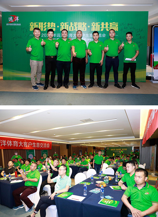 2020年5月10日,遠洋體育公司在中山市阜沙鎮大信酒店隆重開展以“新形勢·新戰略·新共贏”為主題的大客戶生意交流會。遠洋體育總部團隊、行業領袖、商界大咖,以及意向加盟的眾多商家薈聚現場,共謀發展大計。