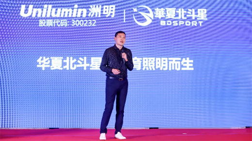 新品推介環(huán)節(jié),廣東北斗星渠道銷售總經(jīng)理楊坤先生從產(chǎn)品與技術的角度帶來了《科技助力體育場地專業(yè)燈光照明》主題報告。他從華夏北斗星的硬實力入手,先后介紹了華夏北斗星體育照明系統(tǒng),華夏北斗星體育照明燈具,核心優(yōu)勢、創(chuàng)新技術、案例賞析等。