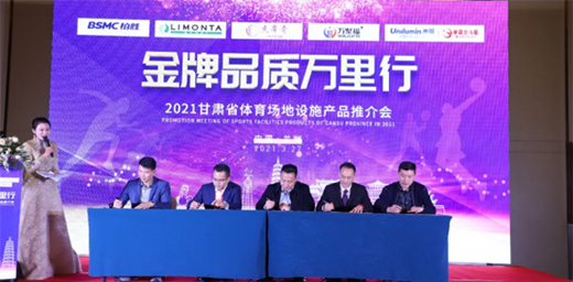 會議最后,在全場來賓的見證下,五家主辦企業(yè)領導共同簽署了《品質(zhì)承諾書》,向甘肅體育設施建設行業(yè)保證保質(zhì),立下軍令狀,決心為甘肅省體育場地設施基礎建設貢獻一份力量。