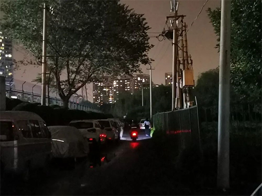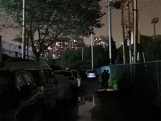 5月31日晚上,記者來到首都體育學院西路,狹窄的道路看起來十分昏暗。雖然路西側有商場的照明燈,但是幾乎照不到首都體育學院西路上。往來的不少行人都打開了手機上的手電筒,才能勉強看清腳下的路。