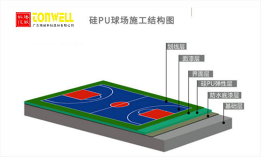 硅PU彈性運動場鋪裝材料是一種符合人體工學原理并滿足運動所需物理、機械特性需要的,健康型專業彈性合成球場面層材料系統。