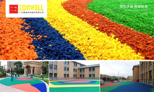 騰威“耐奧騰”品牌EPDM橡膠顆粒環保符合新國標GB 36246-2018要求,采用優質EPDM三元乙丙橡膠、環保橡膠軟化油、納米碳酸鈣和環保色料為原材料,含膠量足,具有優異的彈性、防滑性、耐老化、耐腐蝕、耐磨,其著色力高、色彩鮮艷、不色變,可以滿足不同顏色、不同預算要求的客戶需求。