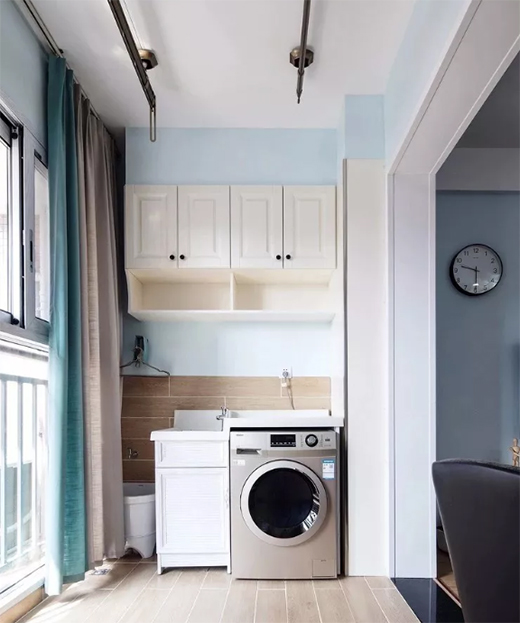 家里有兩個陽臺的大戶型,都會分出一個生活陽臺做家務區,一步完成洗晾曬、清潔和收納家務工具;
