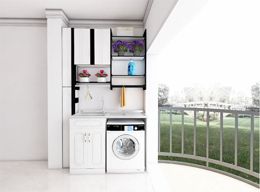 所以,最為理想的洗晾一體型陽臺柜,儲物柜、手洗盆和洗衣機一個也不能少。