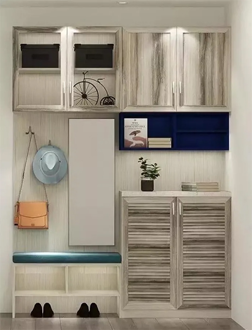其實(shí)對(duì)于我們定制鞋柜來(lái)說(shuō)的話,設(shè)計(jì)還是比較靈活的,我們可以設(shè)置收納柜、掛衣鉤、換鞋凳融為一體,這樣我們可以將鑰匙,隨身穿的衣服掛在掛衣鉤上面,還有單獨(dú)的收納區(qū),也方便我們換鞋子。