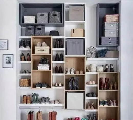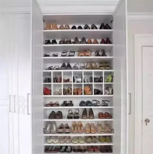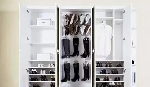 鞋子高低有差,而且夏天鞋子一般比較矮,冬天靴子類(lèi)比較多,長(zhǎng)靴、短靴需要不同空間,做幾個(gè)活動(dòng)層板,靈活取用,就很方便了。