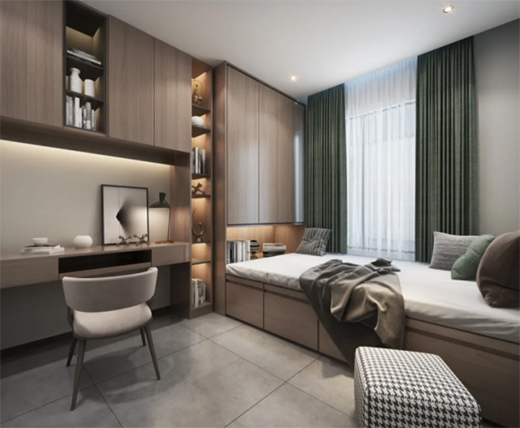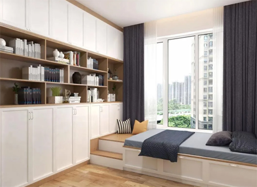 中小戶型也想擁有全鋁書桌書柜,可以利用飄窗與床頭的一側墻面定制到頂飄窗柜,采光通透,空氣清新,坐在榻榻米上看書,盡是滿滿的愜意。