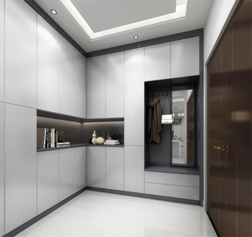 大戶型一般從進門到客廳還有很大的空間,可以整墻打造全鋁玄關柜,充分利用到頂柜打造視覺統一的整體空間,讓入戶空間顯得高端大氣的同時還特別實用。