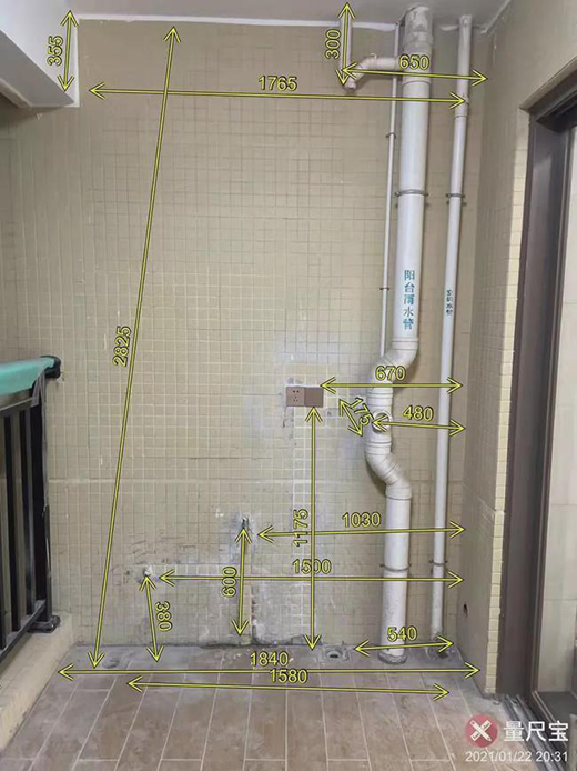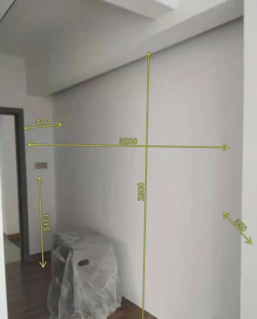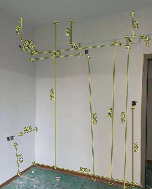 然后,我們從量尺圖開始。可以看到,復雜的房屋結構,也讓量尺出現復雜的記錄。因此,量尺員需要全面考慮到現場環境的各個因素,讓尺寸非常精準,才能在后期的設計制作中事半功倍。