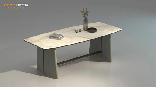 長餐桌:這是個2200的長餐桌,可坐8人。臺面的兩長邊用弧線,使產(chǎn)品更靈動,采用巖板與原木復(fù)合來用,白玉色的臺面與木色之間搭配有質(zhì)感和檔次,腿部運用三角形造型,呼應(yīng)于沙發(fā),以及顏色的搭配呼應(yīng)于柜體。腿部鋁材為主材,中間點綴原木,底下點綴銅,整體外觀簡潔、大氣、奢華。