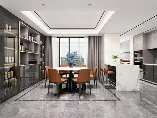 定制鋁柜的虛實布置,開放與封閉式結合設計,將雜亂零碎的物品收納起來,美觀的展示物件擺放在外,藏露有致,為打造整潔而有藝術品味的家居提供強大的功能。具有很強的時尚感與實用性,干凈整潔,展露空間之美。