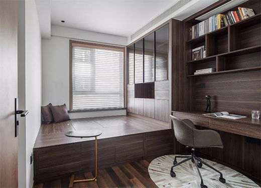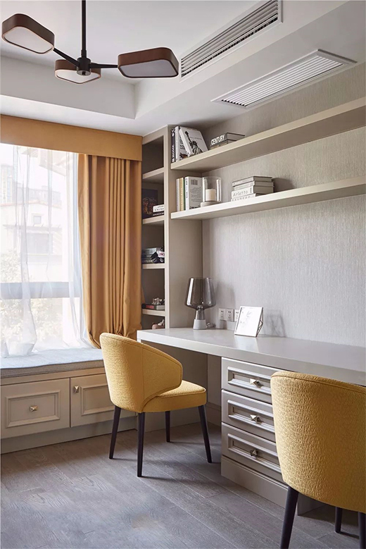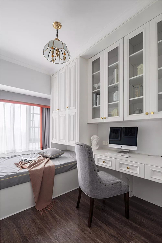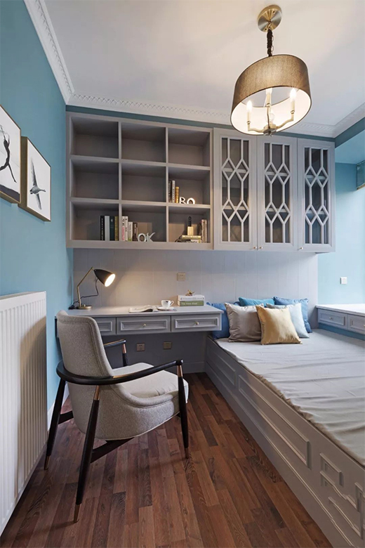 在當下的剛需戶型中,幾乎所有人家的房子里,都會有一個不大不小的“房間”,完全用來做書房的話,偶爾來了客人住家里又沒個床,而完全用來做客房的話,使用率不高又覺得浪費了,利用起來非常的尷尬!這個時候就可以通過定制家具的設計,把書桌與床或收納柜組合的設計,讓小空間實現大利用的可能。