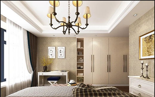 西南鋁全鋁家居利用床尾的一整面墻定制衣柜+梳妝臺,梳妝區就是整面墻最好的留空處理,增加功能的同時,也不會產生壓抑感。西南鋁全鋁家居考慮到梳妝臺的照明,那么從多角度、自然光的溫色這樣鏡中反射出來的光源會輔助愛美的你畫出最美的妝容。