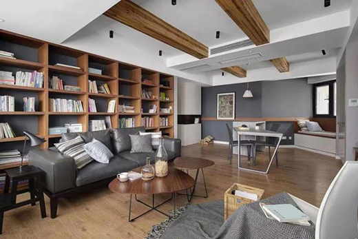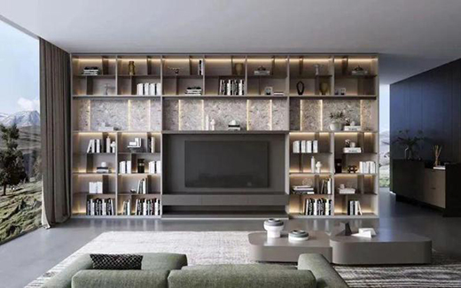 沙發墻全鋁書柜:客廳沙發背景墻上可以裝一個全鋁書柜,內嵌設計更省空間。旁邊搭配落地燈或是復古臺燈,格調感十足,平時可以坐在沙發上看書閱讀,非常方便。