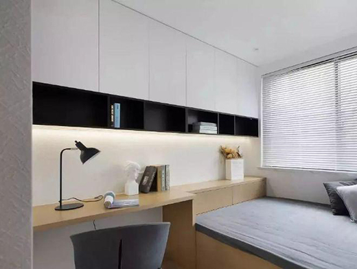 飄窗書柜:飄窗設計全鋁書柜,不僅提升顏值美觀,而且實用性很強,視覺上更加完美。