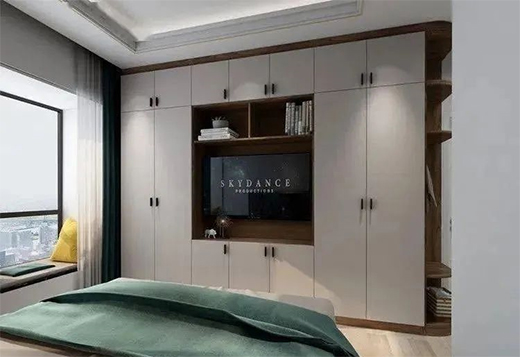 一柜到頂的衣柜在顏值上有著壓倒性的勝利,防塵效果好,到頂的空間還能多收納幾床棉被。