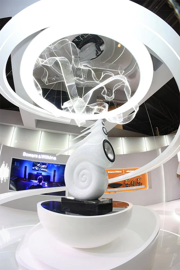 在“設(shè)計(jì)上海”的舞臺(tái)上,寶華韋健以“音樂(lè)是生活的藝術(shù),無(wú)處不在”為主題,精心打造了一個(gè)充滿藝術(shù)氣息和奢華氛圍的展示空間。鸚鵡螺作為寶華韋健的標(biāo)志性產(chǎn)品,以其獨(dú)特的造型和卓越的音質(zhì)成為了展示空間的焦點(diǎn)。這款融合了復(fù)古與現(xiàn)代設(shè)計(jì)元素的音響,不僅展現(xiàn)了寶華韋健對(duì)聲音藝術(shù)的獨(dú)特理解,更彰顯了品牌對(duì)奢華與藝術(shù)的追求。