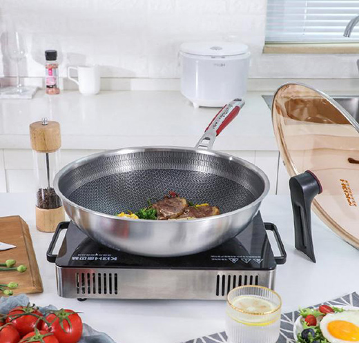 康巴赫憑借蜂窩不粘技術,成為市場上家喻戶曉的高端廚具品牌。它又不斷變革改良、匠心鍛造,推出全新第三代316L不銹鋼蜂窩不粘鍋。其主要材質316L不銹鋼常用于食品、建材、醫療器械等領域,是目前市面上最好的不銹鋼材料。因添加了鉬,使得整個鍋體耐蝕性、耐高溫性大大提高;也因為有了更高的鎳占比,也讓材料性質更穩定,應用在鍋具中,大大增強鍋具耐用性。