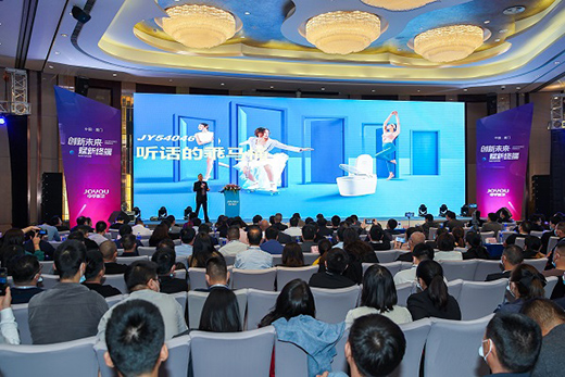 此次2021新品亮相,將實用與美學完美融合,更好地詮釋“潮生活 有模有YOUNG”的新品潮流態度。典雅萊茵、情調輕曲、精致凌致、商務柏雅、型格雅姿、情懷里約、輕簡美狄斯七大新品套間驚艷四座。與此同時,擁有舒心智洗、關懷智享、健康智護三大核心功能并且搭載YOU-CLEAN宇潔 AI智能語音系統的JY54046首發上線,帶你進入“動口不動手”如廁新時代,用戶只需說話即可控制馬桶,可謂當下最具黑科技,也最懂消費者的智能馬桶產品之一。