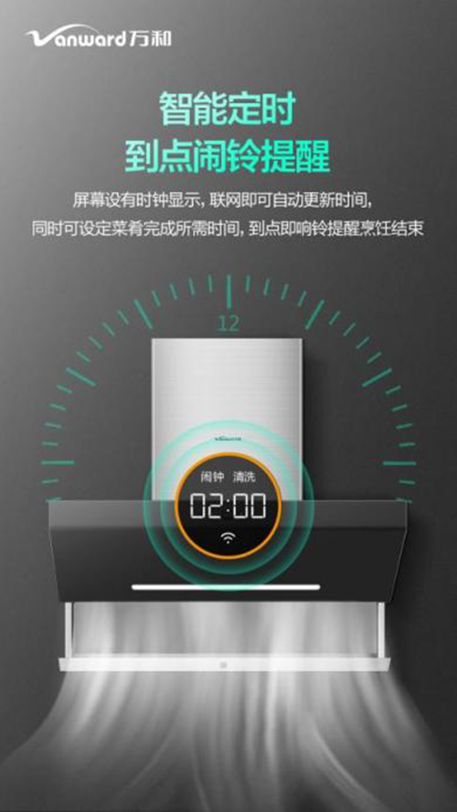 萬和在深挖用戶研究中,在蒸菜與煲湯中一直惦記著時間。萬和智能潛吸煙機L26T,裝配了智能鬧鐘提醒功能,可調(diào)1-99分鐘定時功能,到點即響鈴提醒,做菜時間更精準(zhǔn),,火候剛好,菜肴更香。
