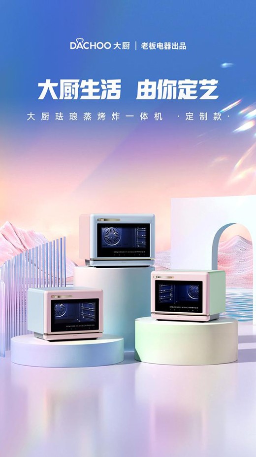 作為廚電行業的追風者,“大廚”敏銳察覺到用戶對定制化廚電設備的需求,率先推出行業首款定制蒸烤炸一體機-大廚琺瑯蒸烤炸一體機,在強大性能基礎之上以定制化的色彩組合方案,滿足當代消費者個性化定制、獨一無二的廚電體驗。