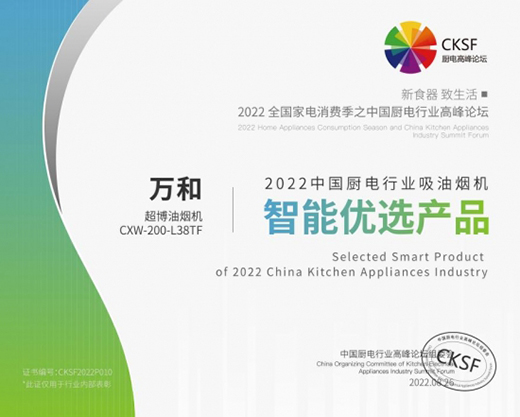 會議還對2022年度表現優秀的廚電品牌進行了表彰,其中萬和電氣一舉斬獲了“2022中國廚電行業吸油煙機智能先鋒品牌”、“2022中國廚電行業吸油煙機智能優選產品”以及“2022中國廚電行業渠道貢獻獎”三項大獎。以技術和實力,贏得了行業專家與消費者的認可。
