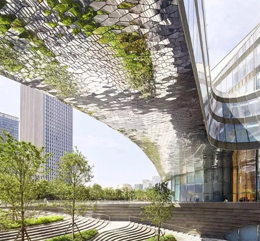 鏡面不銹鋼表面可形成反射,將周圍的景物通過鏡像形成投射,以虛空的形式反射出真實的內容。在景觀設計中,可以通過增加鏡面不銹鋼設計,擴大空間,提升場景亮點,形成科技感,未來感。但如果使用不當也會形成光污染、容易擦花,影響美觀等負面影響,需要加強后期養護。當然鏡面不銹鋼也不可過多使用,會給人帶來緊張感,造成的空間體驗感并不好。