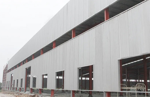 該項目外墻面板及頂板采用泰山鋼鐵410/2B不銹鋼,板厚為0.35mm,天溝采用泰山鋼鐵410不銹鋼,板厚為1.30mm。由于用于車間項目建設,客戶對于不銹鋼壓瓦及天溝的加工質量要求非常高。客戶在選擇供應商之前對偉業不銹鋼進行了實地的嚴格考察,從噴涂壓瓦線、材料庫存、生產加工設備、質量管控、加工工藝等多方面都比較滿意,再加上偉業不銹鋼與泰山鋼鐵進行長期戰略合作。泰鋼的優質不銹鋼材料及偉業噴涂壓瓦線獲得了客戶的充分認可,于是達成了合作。