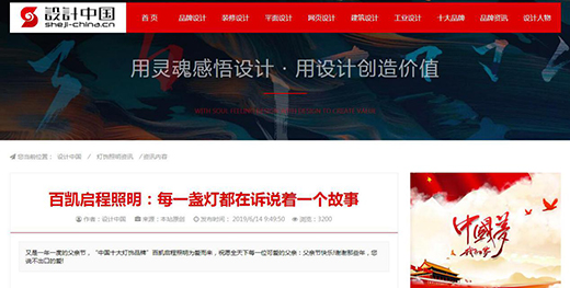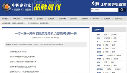 《中國企業家?品牌周刊》刊載報道:多年來,百凱啟程團隊始終站在消費者的角度看問題,并憑借敏銳的市場觸覺與成熟的設計水平致力于時尚產品的研發生產,接連不斷地向市場輸送別具一格的照明臻品。