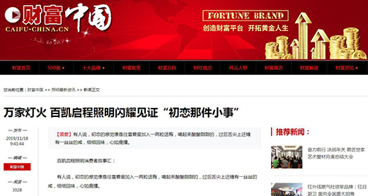 如與大家分享某位消費者與百凱啟程照明之間的故事,感動了萬千讀者。同時得到了《財富中國》的寄語:也許在你的故事中,百凱啟程是你迷茫失意時的領航燈,是你成功如意時的聚光燈,是你多愁難眠時的小夜燈......生命中每一段起起伏伏的歷程,都值得被珍藏。