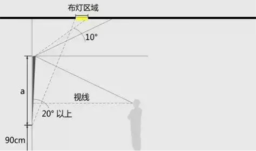 在觀眾觀看展品的視場內(nèi),不應(yīng)有來自光源或窗戶的直接眩光或來自各種表面的反射眩光。對于燈具在展品上形成的一次反射眩光,可以將燈具安裝在無反射干擾的布燈區(qū)進(jìn)行消除。
